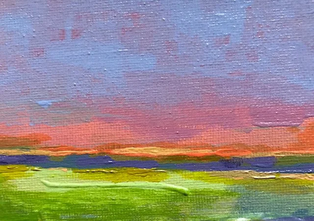 “Paint and its particular characteristics are more important to me than the subject matter they may represent. I sometimes do use recognizable motifs such as flowers, sunrises, or landscapes that have sentimental value as points of departure, but painting mirrored likenesses does not interest me. My focus instead is on producing works of art through the careful placement of colors, shapes, lines, patterns, and even the brushstrokes themselves. When these combined elements flow together to make visible an image that has never been seen before, I come alive! It’s my happy place in the midst of an ugly and chaotic world.”